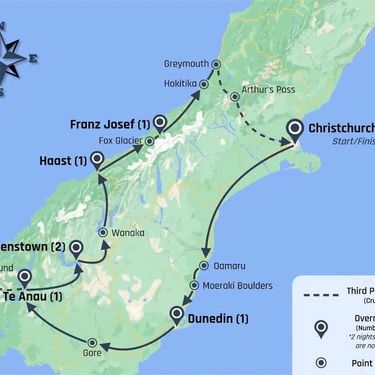 With a maximum of 24 guests, expect to immerse yourself in vibrant city life, historic towns, and mesmerizing nature. Your Kirra Tours guided tour will take you through various remarkable destinations, including Christchurch, Dunedin, Te Anau, Queenstown, Haast, and Franz Josef